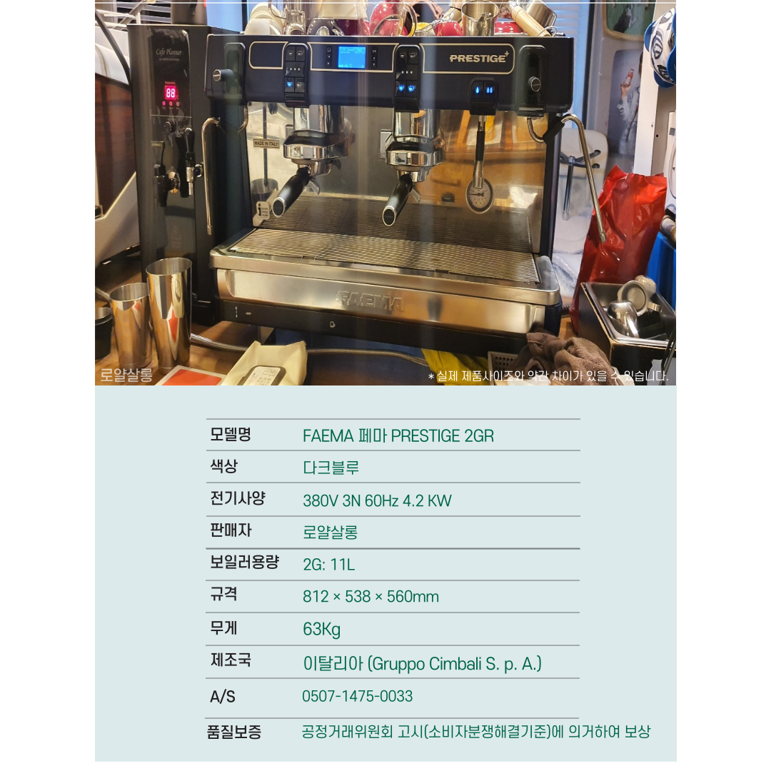 프렌차이즈 업소용 훼마 커피머신 2구 반자동 FAEMA PRESTIGE 고급형