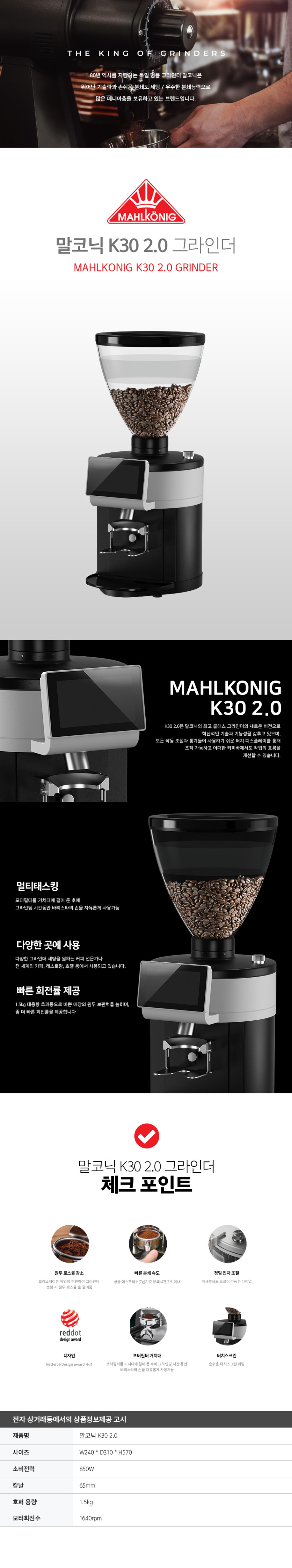 말코닉 K30 2.0 자동 그라인더는 커피 그라인딩의 전문성과 사용자 친화성을 결합한 완벽한 선택입니다. 이 그라인더와 함께라면 항상 탁월한 커피 그라인딩 경험을 즐길 수 있습니다.
