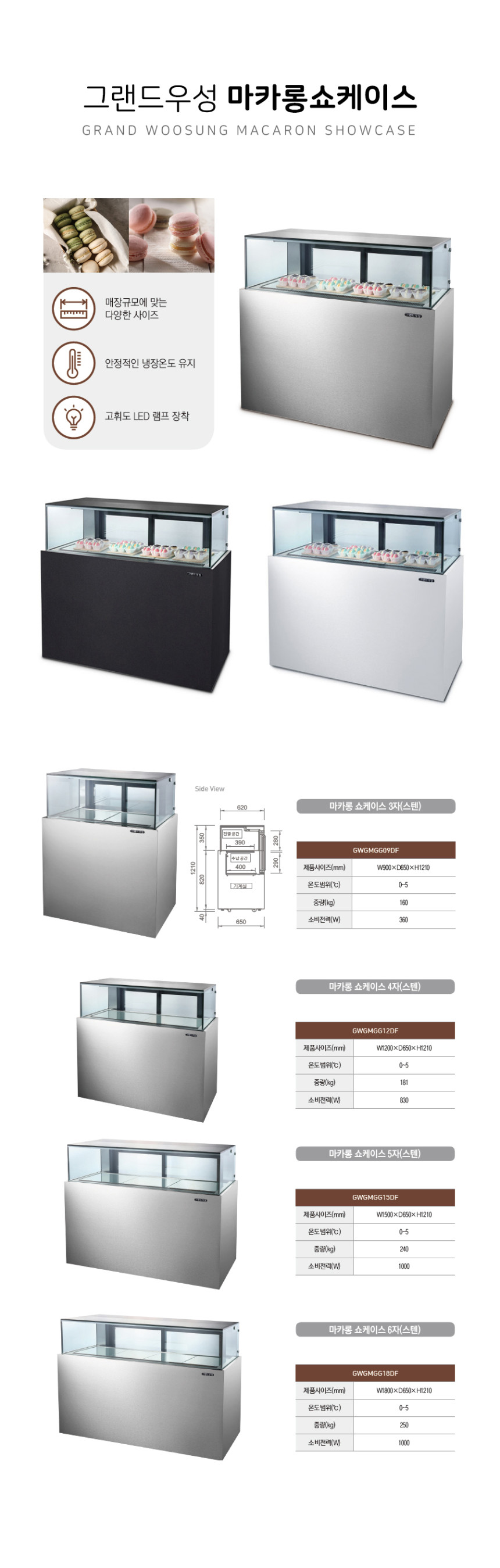 우성 쇼케이스 마카롱 900 카페 냉장고 샌드위치 디저트 제과 쇼케이스는 다양한 디저트와 제과를 전문적으로 진열할 수 있는 최고급 쇼케이스 제품입니다. 이 제품은 카페, 빵집, 제과점 등 다양한 업장에서 고객들에게 다채로운 맛과 풍미를 제공하기 위해 설계되었습니다. 우성 쇼케이스 마카롱 900,1200,1500은 넓은 공간을 활용하여 다양한 종류의 마카롱, 샌드위치, 디저트, 제과 등을 보관하고 진열할 수 있습니다. 그리고 내부의 냉각 시스템은 제품들을 신선하고 맛있게 유지할 수 있도록 도와줍니다.