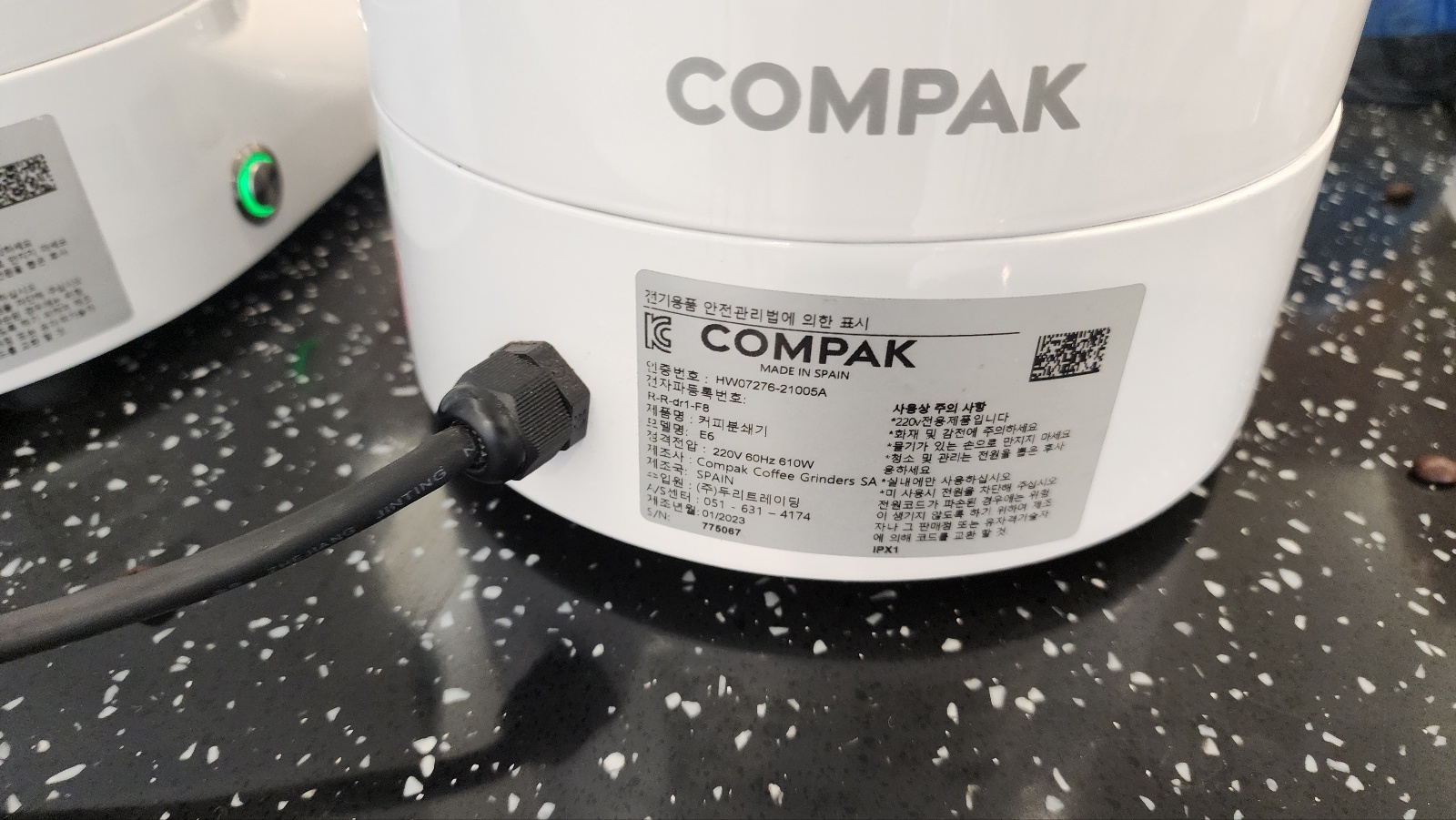제조/조립: 스페인 (MADE IN SPAIN) / Compak Coffee Grinders SA