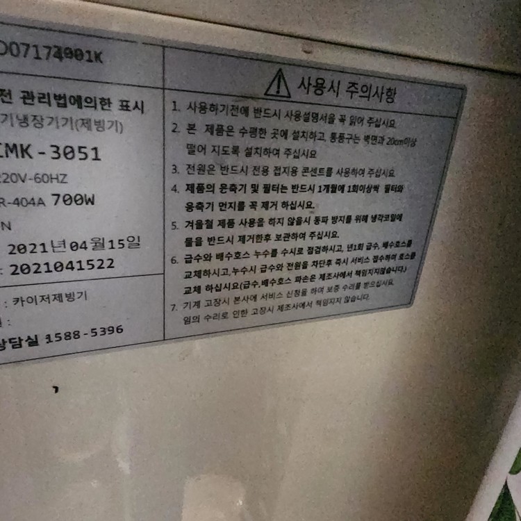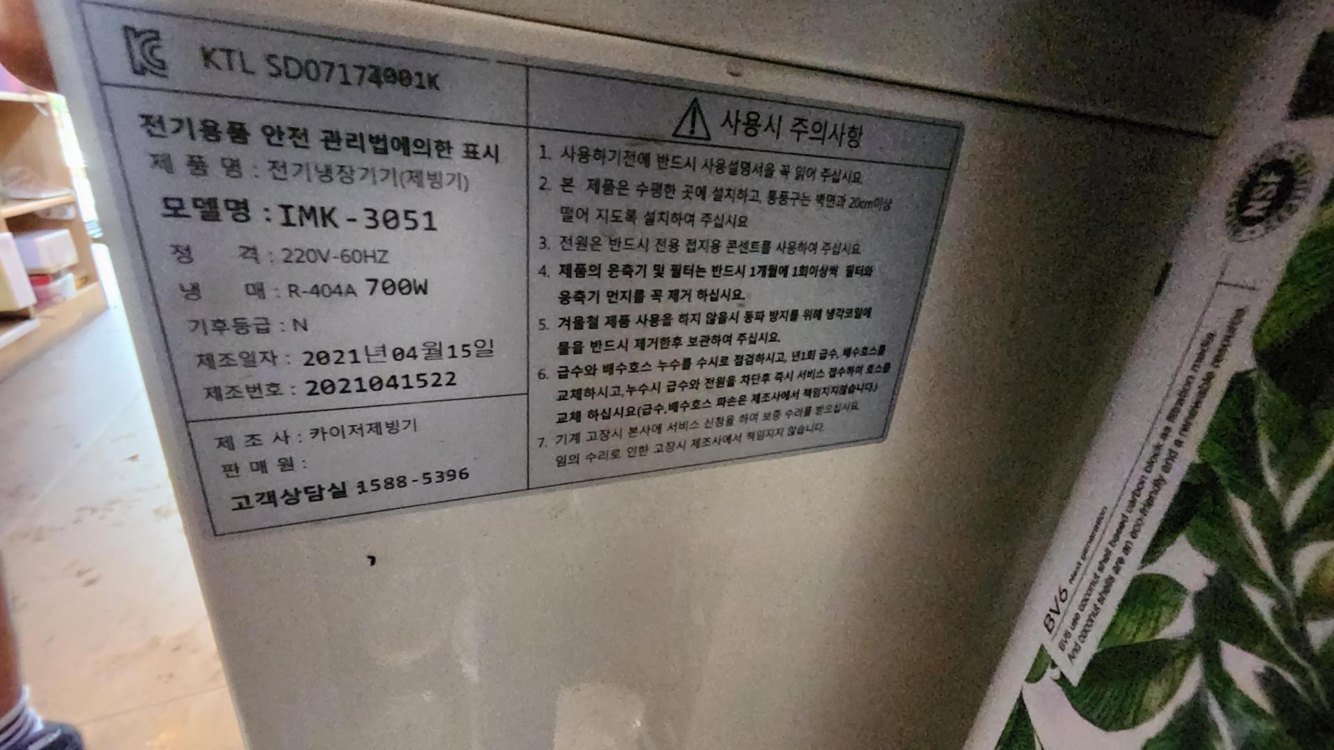 일일 제빙량: 약 30~40kg/day (IMK-3051 통일 스펙)