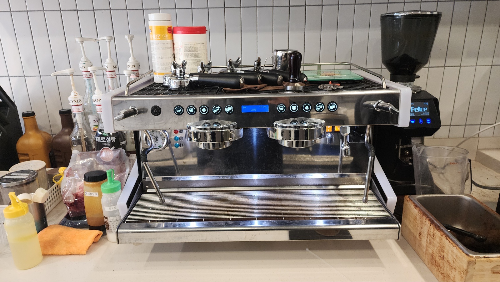업소용 에스프레소머신은 급수와 배수가 필요한 제품입니다.