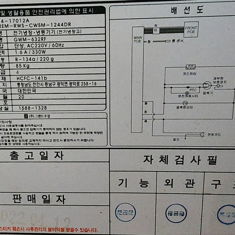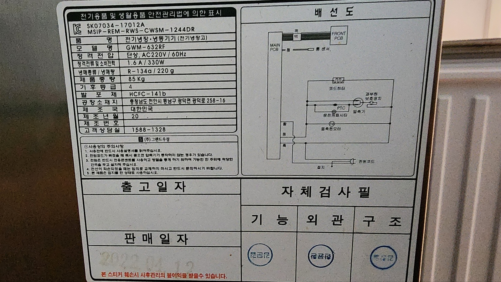 그랜드우성 업소용냉장고 CWSM-632RF 직냉식 25박스 기존 냉장1냉동1 주방냉장고