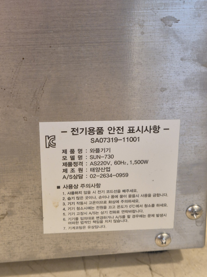 [업소용 와플기계 SUN-730] 태양산업 1500W 전기식 와플메이커 카페 베이커리용