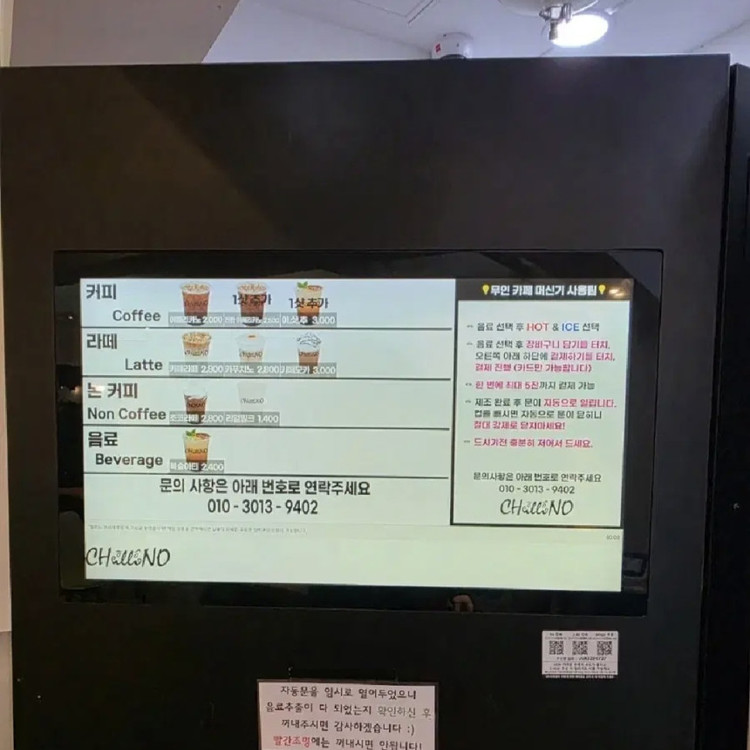 [설치필요품목] : 커피머신, 온수기, 제빙기