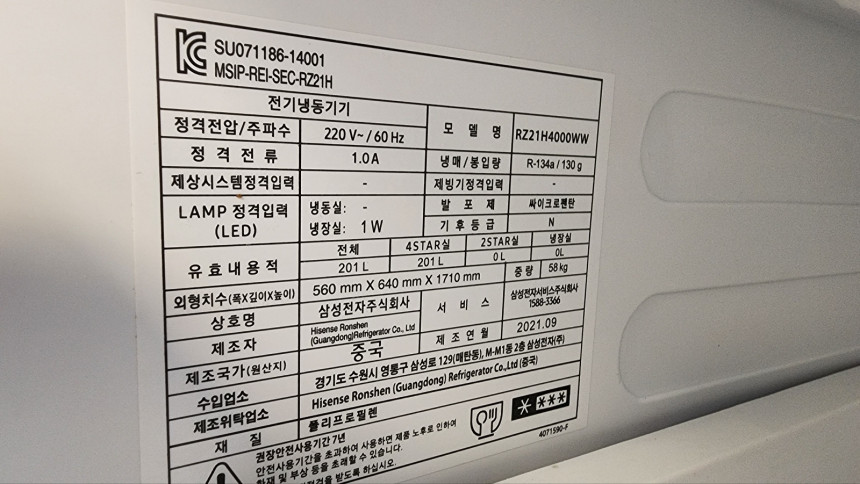 제조사 Hisense Ronshen (Guangdong) Refrigerator Co., Ltd.