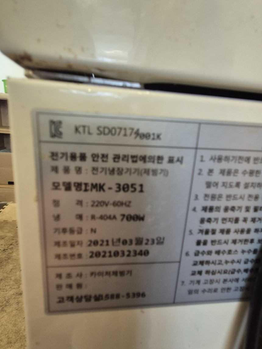인증번호 KTL SD07174-001K
