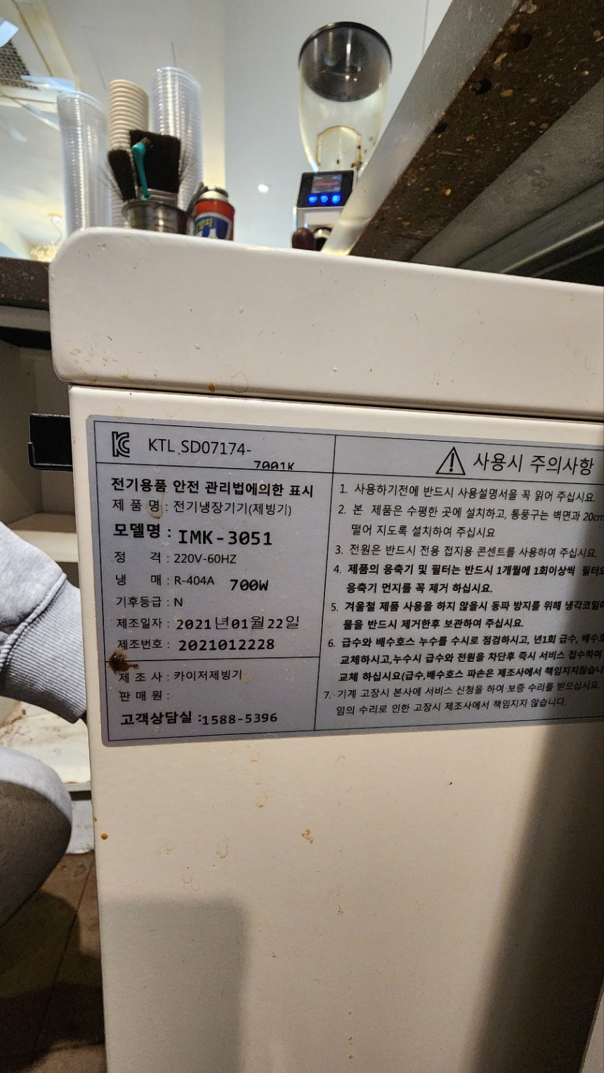 제품명: 전기냉장기기(제빙기)