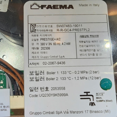 FAEMA 페마 PRESTIGE+ A2 2그룹 에스프레소 머신 업소용 커피머신