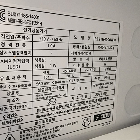 제조사 Hisense Ronshen (Guangdong) Refrigerator Co., Ltd.