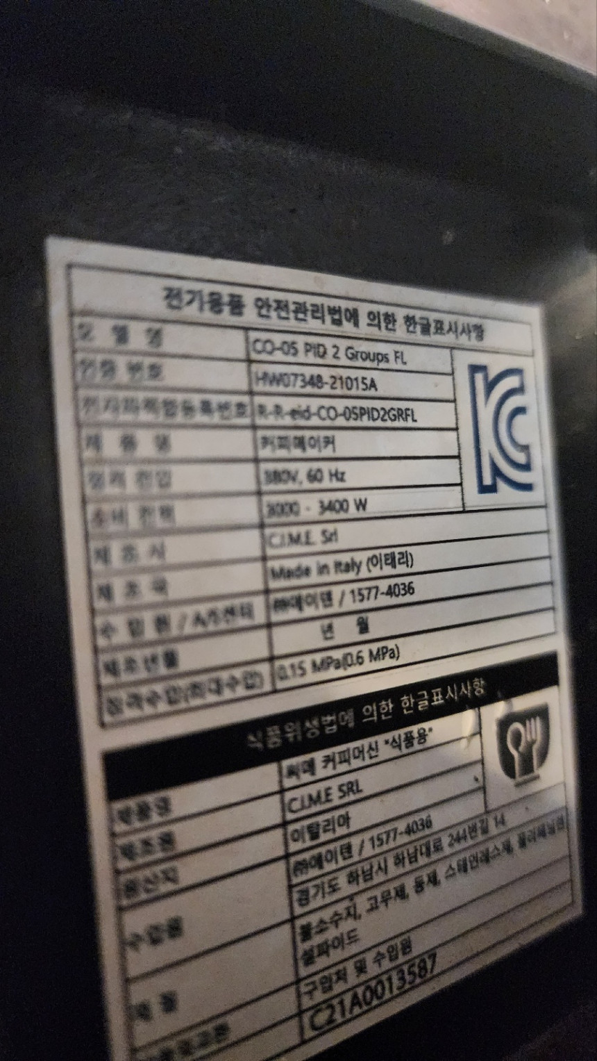 분전함에서 3.5KW이상의 단독라인으로 커피머신을