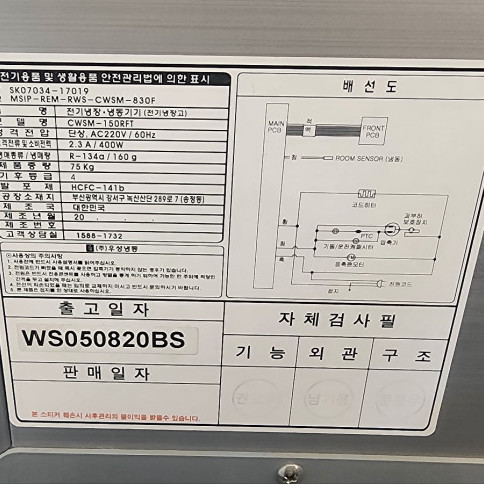 냉매 종류 / 충전량: R-134a / 160g