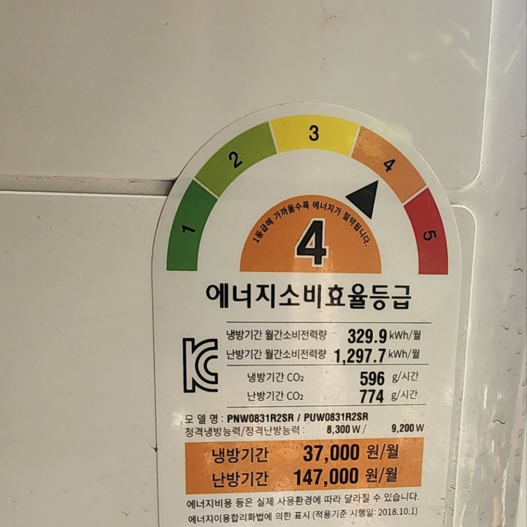 소비전력은 기본 3,500W~4,500W 입니다.
