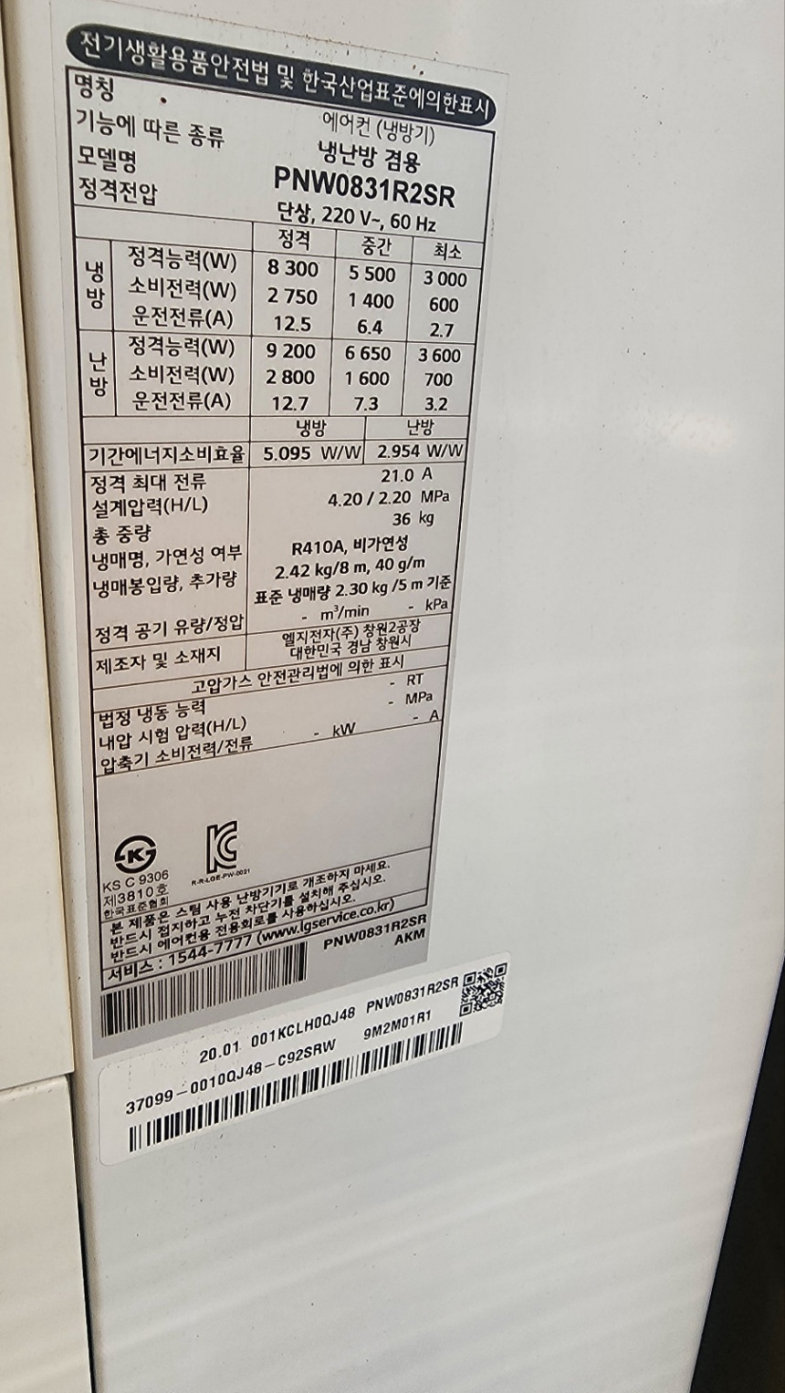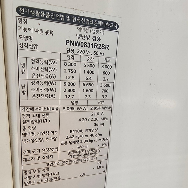 제조사: 엘지전자(주) 창원공장